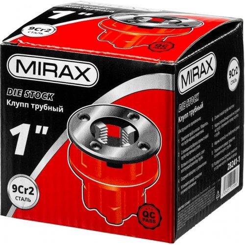 Клупп MIRAX 28241-1, предназначен для нарезания правой трубной конической резьбы на металлических трубах стандартного диаметра. Может использоваться как профессиональными сантехниками, так и домашними мастерами.