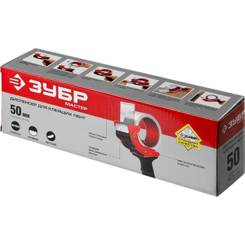 Диспенсер ЗУБР 1201_z02, предназначен для нанесения клеящей ленты на различные поверхности. Обеспечивает удобство и комфорт при работе с клеящими лентами, облегчает и ускоряет работу. Снабжен металлическим лезвием для обрезки ленты, имеет удобную рукоятку и пластину для прижима отрезанной ленты. Оснащен металлическим каркасом, обеспечивающим высокую прочность изделия и длительный срок службы. Механический тормоз позволяет регулировать натяжение ленты. Откидывающаяся пластиковая крышка для защиты от случайного пореза.