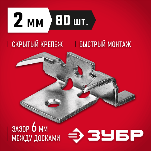Крепеж с шипами и дистанциром для террасной доски Союз ЗУБР 30701, предназначен для существенного ускорения и облегчения проведения отделочных работ, обладая при этом рядом преимуществ по сравнению с традиционным креплением при помощи гвоздей. Доска крепится к обрешетке двумя саморезами под углом 90 через монтажные отверстия на плоскостях крепежа. Если доступ к крепежу затруднен, монтаж осуществляется одним или двумя саморезами в основание под углом 45. Подбирайте длину саморезов исходя из толщины монтируемой доски и бруса обрешетки.