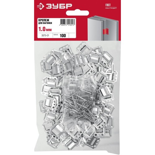 Крепежные скобы для вагонки (кляймеры) ЗУБР 3075-01, предназначены для скрытого монтажа вагонки, ламинированных панелей, панелей МДФ. Существенно ускоряют и облегчают проведение отделочных работ, обладая при этом рядом преимуществ по сравнению с традиционным креплением при помощи гвоздей. Установленная скоба позволяет вагонке двигаться вдоль продольной оси, компенсируя напряжения, возникающие при усадке дома. Скоба прибивается к лаге и прижимает вагонку, исключая образование на ней сколов и трещин. При изменении температуры и влажности исключается коробление древесины. Крепеж незаметен после установки, придает конструкции эстетичный внешний вид. Цинковое покрытие надежно защищает от коррозии.