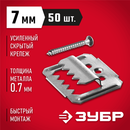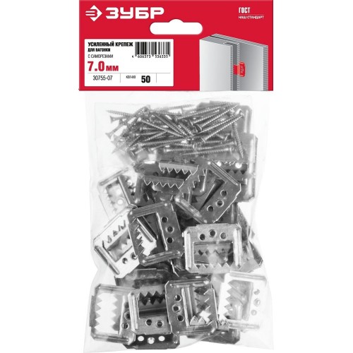 Крепежные скобы для вагонки (кляймеры) ЗУБ30755-07, применяются для скрытого крепления тяжелой вагонки, имитации бруса и блок-хауса, панелей МДФ, ламинированных панелей. Существенно ускоряют и облегчают проведение отделочных работ, обладая при этом рядом преимуществ по сравнению с традиционным креплением при помощи гвоздей. Установленная скоба позволяет вагонке двигаться вдоль продольной оси, компенсируя напряжения, возникающие при усадке дома. Скоба крепится к лаге и прижимает вагонку, исключая образование на ней сколов и трещин. При изменении температуры и влажности исключается коробление древесины. Крепеж незаметен после установки, придает конструкции эстетичный внешний вид.