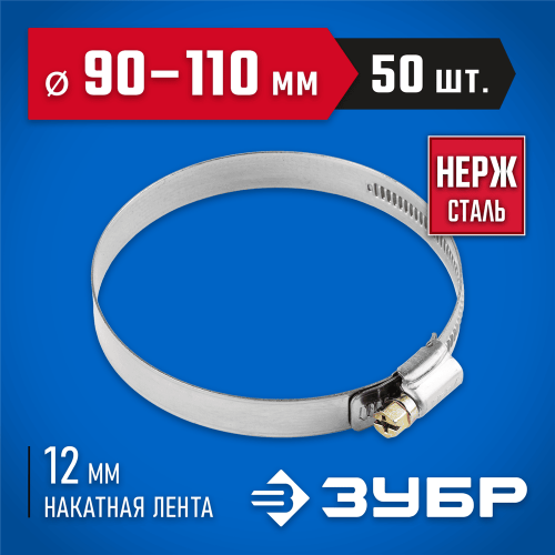 Хомут металлический ЗУБР 37822-90-110-50, предназначен для крепления шлангов к патрубкам, а также широко применяются в автомобилестроении, машиностроении, при выполнении авторемонтных, садовых, сантехнических и прочих работ. Хомут червячный состоит из накатной ленты и замка с винтом. Накатная лента имеет гладкую внутреннюю поверхность, что обеспечивает высокую герметичность соединения без повреждения поверхности скрепляемых материалов. Простота и удобство монтажа - для монтажа достаточно отвертки. Изготовленный из нержавеющей стали хомут обладает повышенной прочностью и коррозионостойкостью. Червячный винт снабжен шестигранной головкой и шлицем SL, что позволяет использовать при монтаже гаечный ключ или шлицевую отвертку. Хомут предназначен для многократного использования.