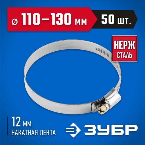 Хомут металлический ЗУБР 37822-110-130-50, предназначен для крепления шлангов к патрубкам, а также широко применяются в автомобилестроении, машиностроении, при выполнении авторемонтных, садовых, сантехнических и прочих работ. Хомут червячный состоит из накатной ленты и замка с винтом. Накатная лента имеет гладкую внутреннюю поверхность, что обеспечивает высокую герметичность соединения без повреждения поверхности скрепляемых материалов. Простота и удобство монтажа - для монтажа достаточно отвертки. Изготовленный из нержавеющей стали хомут обладает повышенной прочностью и коррозионостойкостью. Червячный винт снабжен шестигранной головкой и шлицем SL, что позволяет использовать при монтаже гаечный ключ или шлицевую отвертку. Хомут предназначен для многократного использования.