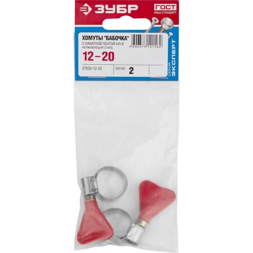 Хомут металлический ЗУБР 37835-12-20, предназначен для крепления шлангов к патрубкам, а также широко применяются в автомобилестроении, машиностроении, при выполнении авторемонтных, садовых, сантехнических и прочих работ. Хомут червячный состоит из накатной ленты и замка с пластиковым ключом. Пластиковый ключ обеспечивает возможность установки хомута без помощи инструментов. Накатная лента имеет гладкую внутреннюю поверхность, что обеспечивает высокую герметичность соединения без повреждения поверхности скрепляемых материалов. Изготовленный из нержавеющей стали хомут обладает повышенной прочностью и коррозионостойкостью. Червячный винт снабжен пластиковым ключом, что позволяет установить хомут без помощи инструментов. Хомут предназначен для многократного использования.
