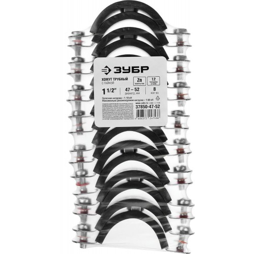 ЗУБР 8 шт., 1 1/2", оцинкованный, хомут трубный с гайкой 37850-47-52 Мастер