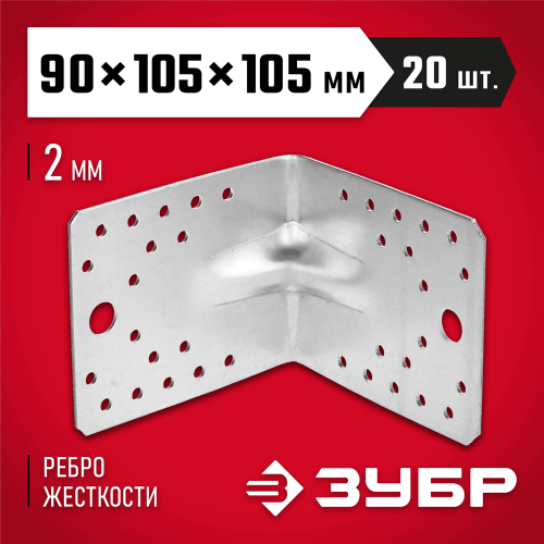 Углы усиленные ЗУБР 310116-90-105, предназначены для соединения элементов конструкции под прямым углом при устройстве стропильной системы в домостроении, а также в мебельном производстве. Углы крепятся к деревянному основанию специальными гвоздями с конической головкой или саморезами. Для крепления к бетону используются анкеры. Наличие большого количества отверстий позволяет легко и быстро осуществить крепление в заданном месте. Использование крепежных углов позволяет избежать трудоемких операций по созданию различных пазов, выступов, шпонок и прорезей в процессе сборки деревянных конструкций при строительстве домов, устройстве крыш, креплении деревянных конструкций к фундаменту и т.п. Повышенная несущая способность благодаря усиленному ребру жесткости. Снабжены отверстиями под гвоздь (саморез) и анкер. Изготовлены из высококачественной листовой стали. Цинковое покрытие надежно защищает от коррозии.
