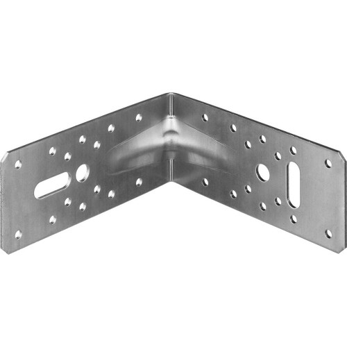 Уголок крепежный усиленный ЗУБР 31011-145, предназначен для соединения элементов конструкции под прямым углом при устройстве стропильной системы в домостроении, а также в мебельном производстве. Угловые крепления (крепежные углы) – это основной элемент соединения перекрестно-перпендикулярных узлов. Монтаж не требует предварительной врезки или создания пазов, выступов и прорезей. Для монтажа деревянных конструкций используются специальные ершеные гвозди с конической головкой или саморезы.