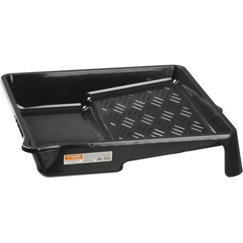 Ванночка малярная ЗУБР 06052-33-35, предназначена для равномерного забора и распределения лакокрасочного материала по поверхности валика. Уникальная форма малярной ванночки предназначена для максимального набора и равномерного распределения лакокрасочного материала по поверхности валика. Для валиков до 110 мм. Специальные насечки для прокатки валика.