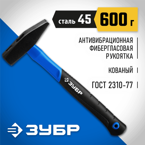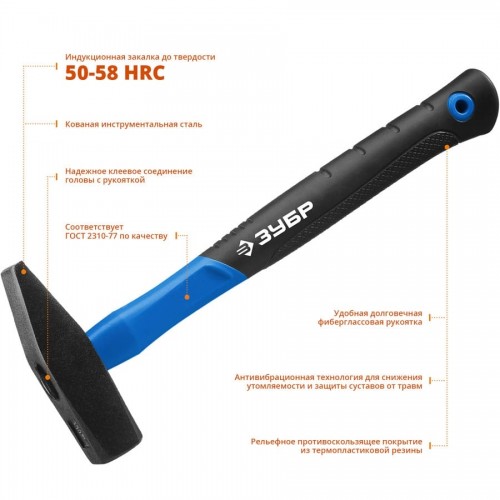 Молоток слесарный ЗУБР 20020-06_z01, предназначен для слесарно-монтажных работ. Двухкомпонентная фиберглассовая рукоятка. Рабочие поверхности головы закалены индукционным методом.