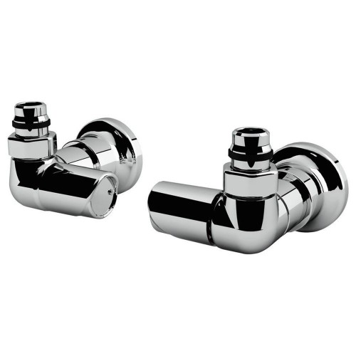 Комплект для полотенцесушителя: микрометрический термостатический клапан и отсечной клапан, двухплоскостные. В двух версиях: клапан термостатический справа - клапан отсечной слева или же клапан термостатический слева - клапан отсечной справа.