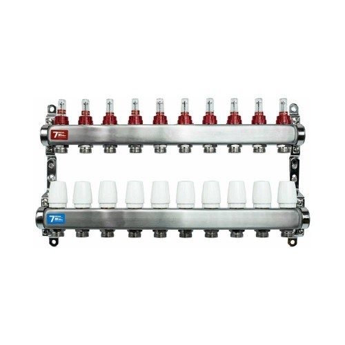 Коллекторные блоки выпускаются с количеством выходов от 2 до 12 и диаметром условного прохода коллекторов 1".