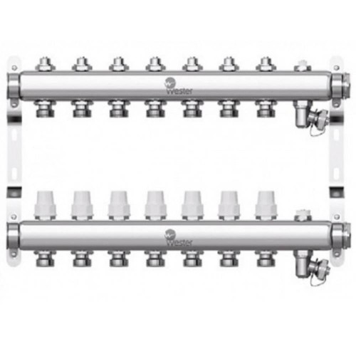 Коллекторы Wester W903 из нержавеющей стали с регулирующими вентилями и запорными клапанами предназначены для оптимизации и контроля распределения теплоносителя в системах радиаторного отопления и подогрева пола.