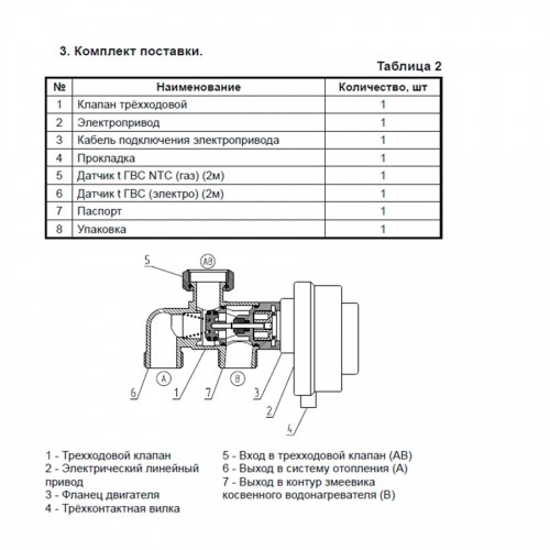 | Состав комплекта | Клапан 3-х ходовой, датчик NTC BAXI (2 м), датчик LM335 (2 м) |