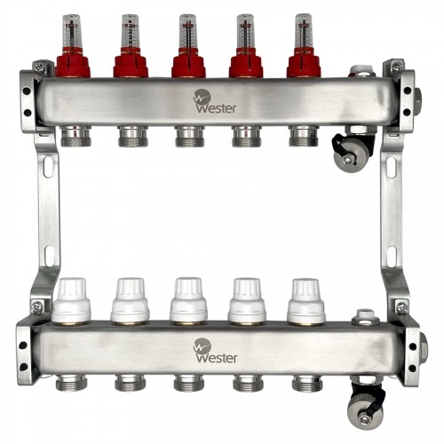 Коллектор Wester нерж. 1"-3/4 в сборе с расходомерами на 5 выходов, MUFS5134