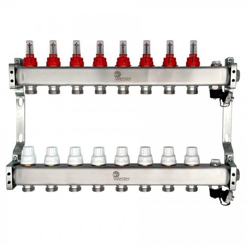 Коллектор Wester нерж. 1"-3/4 в сборе с расходомерами на 8 выходов, MUFS8134