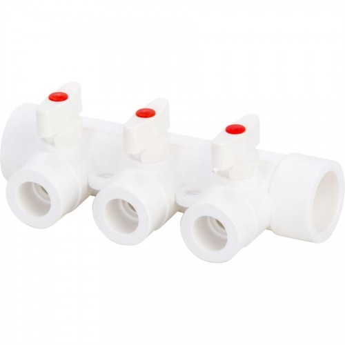 Коллектор с шаровыми кранами LAMMIN PPR представляет собой подающую трубу, на которой расположено три шаровых крана из полипропилена. Запирающие элементы шаровых кранов выполнены из нержавеющей стали. Коллектора для воды выполняют функцию подключения к одному источнику тепла нескольких распределительных трубопроводов.
