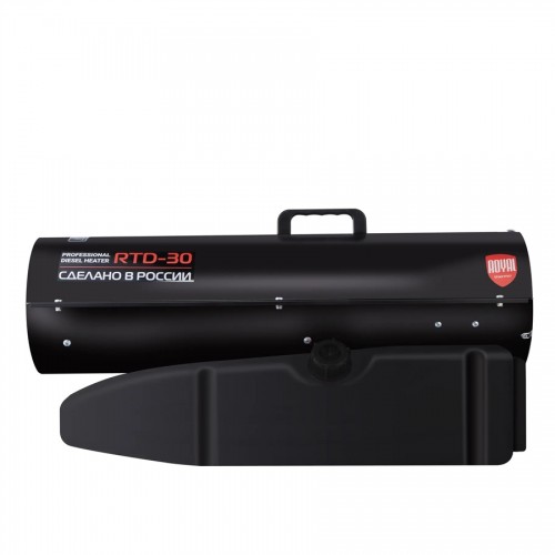 Дизельная тепловая пушка Royal Thermo RTD-30 – это мощный обогреватель, работающий на дизельном топливе. Предназначена для обогрева нежилых помещений и локального прогрева рабочих поверхностей. Высокий уровень КПД прибора близок к 100%, а тепловая мощность 30 кВт, производимая тепловой пушкой – вполне достаточна для использования устройства в качестве мощного генератора тепла.