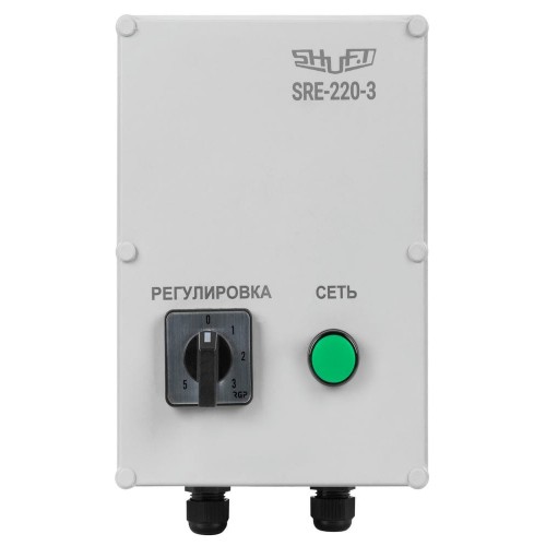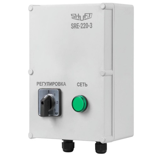 Однофазный тиристорный регулятор скорости SHUFT серии SRE предназначен для плавного регулирования скорости вращения электродвигателей однофазных вентиляторов со встроенной автоматической термозащитой. Можно устанавливать как в стандартное электромонтажное гнездо, так и непосредственно на стену (в комплекте поставляется короб для внешнего монтажа). Корпус изготовлен из высококачественного АБС-пластика, устойчивого к ультрафиолетовым лучам. После включения прибора регулирование скорости электродвигателей осуществляется вручную от максимума к минимуму, что облегчает запуск мотора вентилятора. Выходное напряжение плавно изменяется в диапазоне 0-230 В.