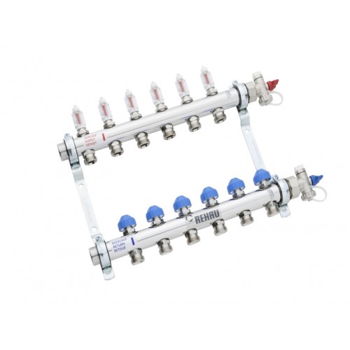• Коллектор REHAU распределительный HKV-D 1"х3/4"ЕК 11 вых. нерж. сталь с расходомерами