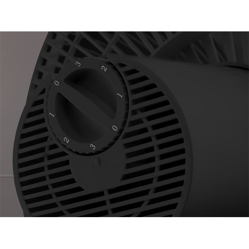 Корпус выполнен из ABS-пластика, пять лопастей окружает защитная решетка, круглое основание обеспечивает высокую устойчивость.