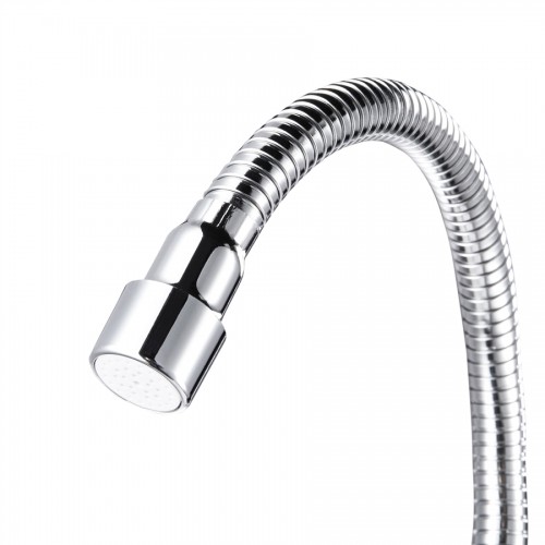 Гибкий шланг-излив решает сразу несколько актуальных задач. Он позволяет регулировать высоту подачи воды, дает возможность направлять струю воды в любое нужно место, с ним легко и удобно ополоснуть фрукты, овощи, раковину и наполнить водой любую емкость. Такой кран оптимально подходит для установки на двойную мойку, делая эксплуатацию наиболее комфортной.