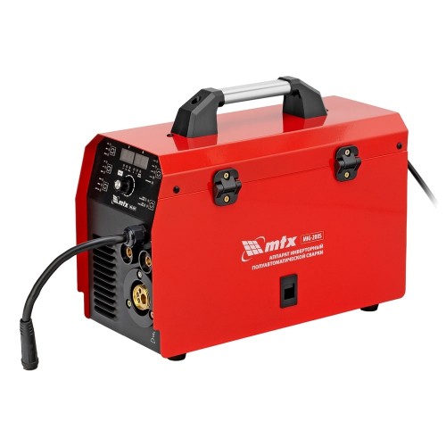 Инверторный аппарат полуавтоматической сварки MTX MIG-200S 94303, предназначенный для сварки на максимальном токе до 200 А, имеет продолжительность включения 60% и совместим с катушками весом до 5 кг. Используется для работы со сталями, черными и цветными металлами. Сварочный аппарат изготовлен с использованием передовой технологии IGBT, позволяющей получать стабильный сварочный ток на выходе. Аппарат имеет высокий КПД при низком энергопотреблении, способен работать при пониженном до 180 В напряжении.