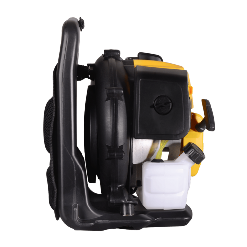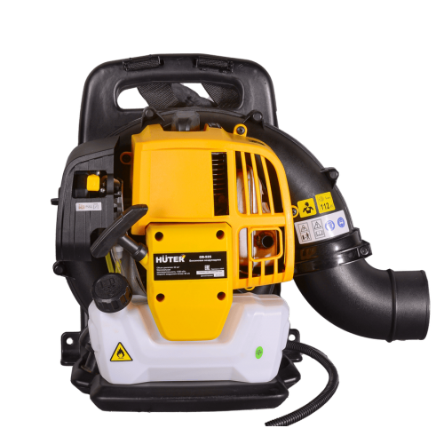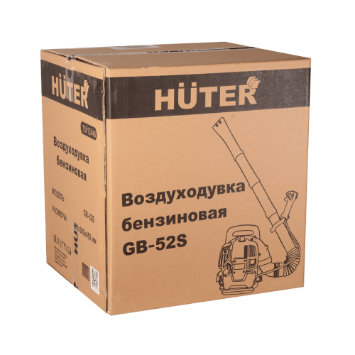 Модель Huter GB-52S получила ручной стартер с регулируемой рукояткой и фиксатором, клавишу включения зажигания, курок газа. Тип используемой свечи зажигания – L7TC. Система охлаждения силового агрегата – воздушная с фильтром. Воздуходувка комплектуется также трубой для выдува воздуха, гибким патрубком, топливным баком объёмом 1.4 л, глушителем. Вес агрегата – 9 кг.