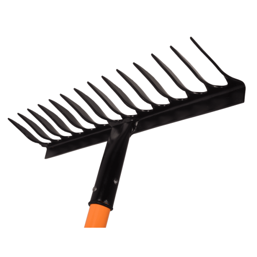 Витые зубья отлично удерживают сухой мусор, что увеличивает скорость работы. Прочная рабочая часть изготовлена из высококачественной стали.