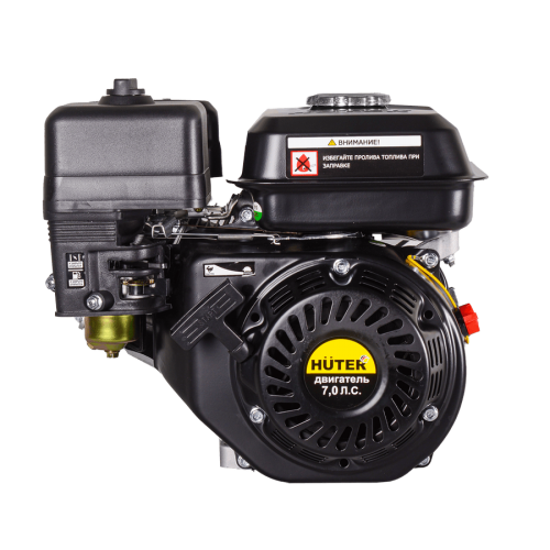Двигатель одноцилиндровый, 4-тактный, с воздушным охлаждением, объёмом 212 см³, мощностью 7 л.с. и с бензобаком объёмом 3.6 л. Он отличается надёжностью, простотой управления и способен обеспечить бесперебойную работу техники без дозаправки в течение длительного времени. Диаметр выходного вала составляет 20 мм. Объём масляного картера – 0.6 л.