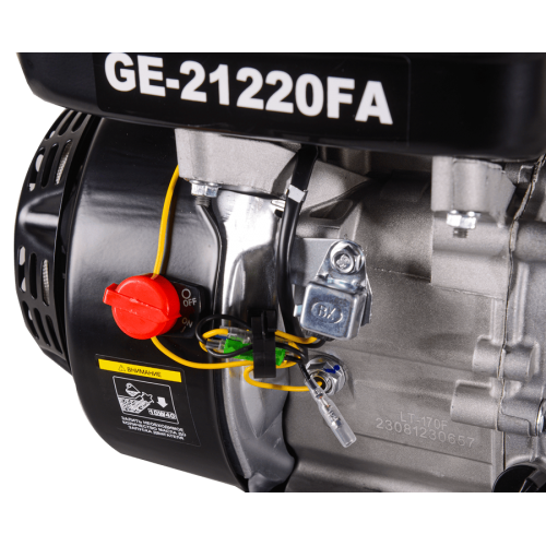 Модель HUTER GE-21220FA оснащена металлическом коленвалом из высокопрочной стали и усиленной поршневой группой с хромированным покрытием, поэтому обладает повышенным рабочим ресурсом. Стартер двигателя ручной. Для удобства эксплуатации имеется автоматический регулятор частоты вращения вала и встроенный датчик уровня масла, не позволяющий произвести запуск двигателя при его низком уровне.