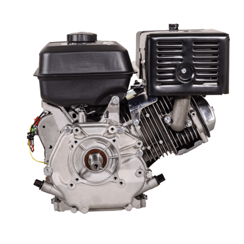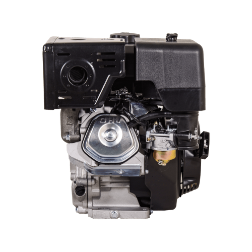 Четырехтактный одноцилиндровый силовой агрегат объемом 389 см³ с воздушным охлаждением работает на бензине 92 АИ. Вместительность топливного бака составляет 6 л. Модель оснащена ручным стартером. Наличие датчика масла предотвращает поломку установки при отсутствии или критически низком уровне масла, в этих случаях запуск невозможен или происходит автоматическая остановка агрегата. Двигатель имеет автоматический регулятор частоты вращения, благодаря чему упрощается работа оператора. Модель имеет усиленную конструкцию, цилиндропоршневая группа защищена хромированным покрытием. Прочный металлический коленвал обеспечивает большой ресурс ДВС и его надежную работу. Использование в конструкции выходного вала диаметром 25 мм со шпонкой обеспечивает более высокую прочность фиксации деталей, передачу большего крутящего момента. Вес агрегата составляет 30,38 кг.