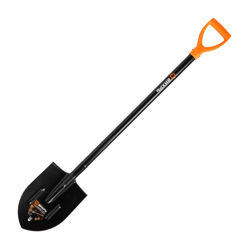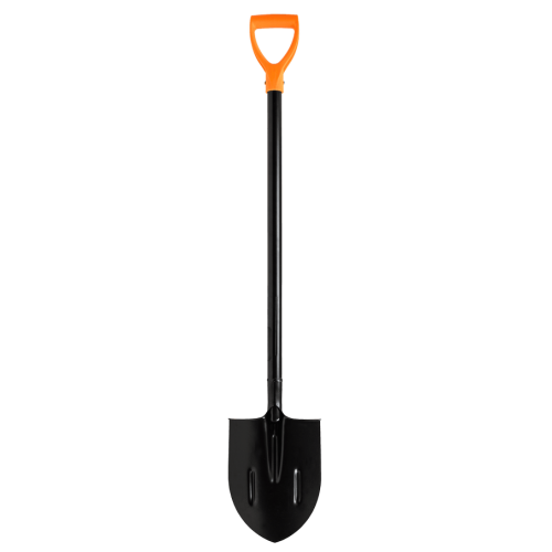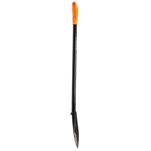Металлический черенок круглого сечения обладает высокой прочностью и надежностью, сварное соединение лопаты и лезвия делает инструмент долговечным и устойчивым к нагрузкам.