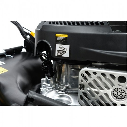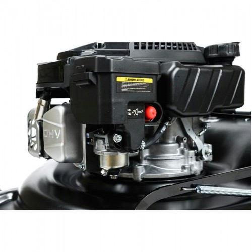 Мощность бензогазонокосилки – 5 л. с., что существенно превышает потенциал любого электрического аналога. Ширина среза – 460 мм, а высоту расположения ножей можно выбирать из 7 возможных вариантов в диапазоне от 25 до 75 мм.