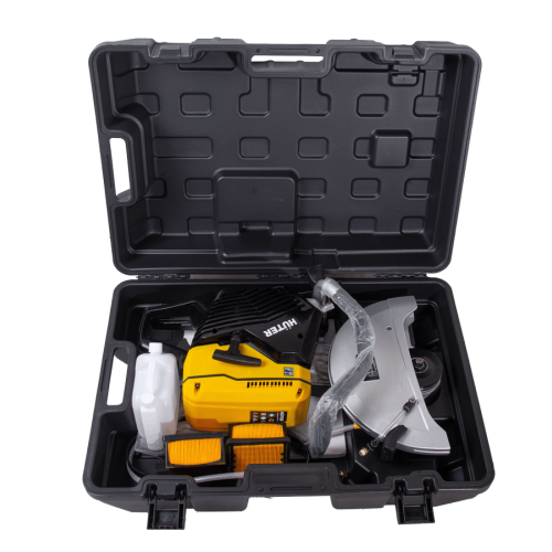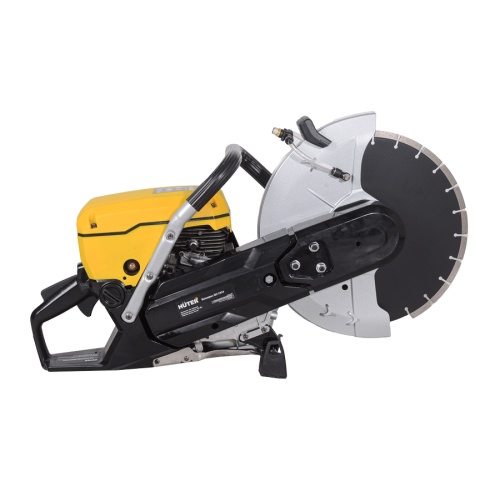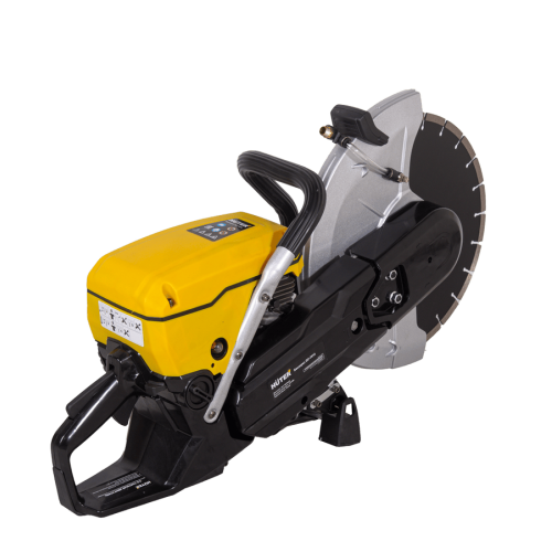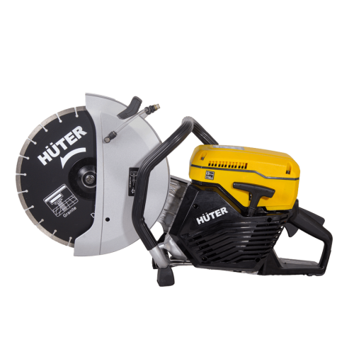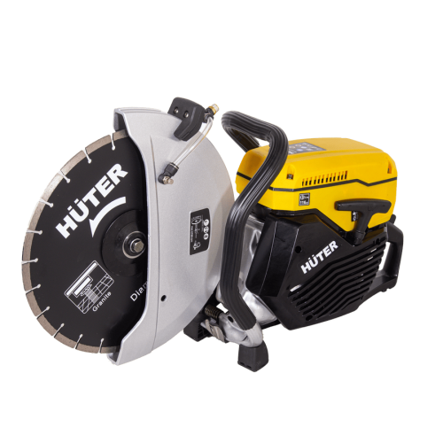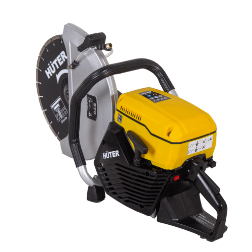 Объем двигателя 74 см³ обеспечивает высокий крутящий момент. Максимальная скорость вращения диска составляет 4700 об/мин. Втулка универсального размера позволяет использовать режущие элементы с посадочным отверстием 20 и 25,4 мм. Диаметр используемых дисков может достигать 350 мм, что обеспечивает разрезы глубиной до 125 мм. Это позволяет проводить монтажные и демонтажные работы, нарезать штробы, дверные проемы, бетон, кирпичную кладку и асфальт. Система подачи воды с универсальным штуцером обеспечивает возможность влажной резки.