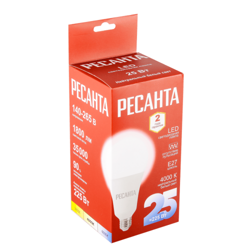 Лампа светодиодная Ресанта LL-R-A95-25W-230-4K-E27