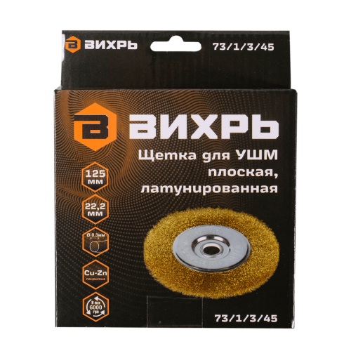 Щётка для УШМ Вихрь плоская, латунированная, 125 мм - это незаменимый инструмент для обработки и подготовки поверхностей перед покраской или покрытием.