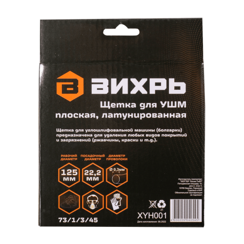 Щётка для УШМ Вихрь плоская, латунированная, диаметром 125 мм предназначена для различных видов очистки и обработки поверхностей.