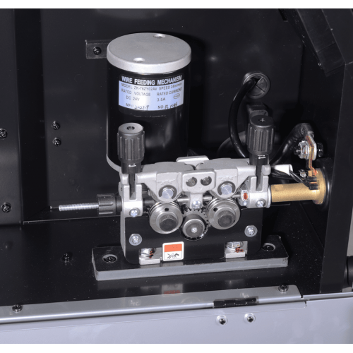 Сварочный аппарат инверторного типа имеет катушку. Это позволяет вмещать длинную проволоку толщиной от 0,8 до 1,2 мм. Диаметр электродов составляет 1,5-6 мм. Функция Antistick предотвращает приваривание электрода путем снижения тока. Горячий старт обеспечивает качественный шов при плохом напряжении сети и на металле с коррозией. Форсаж дуги повышает сварочный ток при ее обрыве и угасании.
