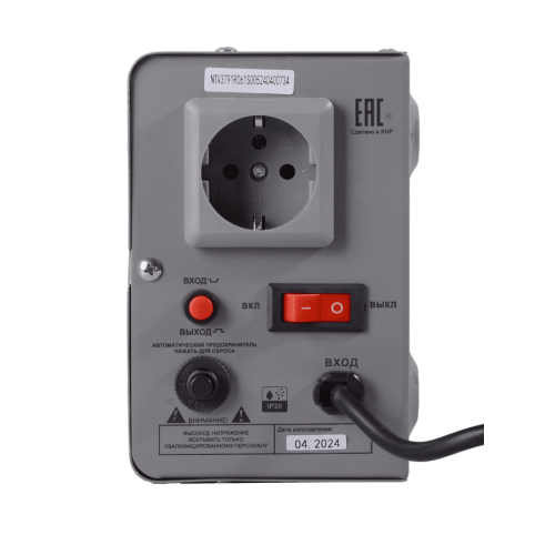 Благодаря компактным размерам и весу 3,385 кг его легко разместить в любом помещении. Одна выходная розетка размещена на корпусе. Класс защиты - IP20 - использование в домах и офисах, помещениях с сухим воздухом.