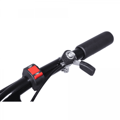 Машина имеет ширину обработки 100 см. Глубина регулируется сошником. Диаметр фрез: 30 см. Закаленные фрезы и наличие пониженной передачи позволяет справиться даже с устоявшимся дерном на плотной почве. У данной модели 3 передачи для движения вперед и 1 назад. Задняя передача позволяет легко извлекать мотоблок из грунта.