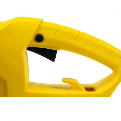 Удобная рукоятка хорошо сидит в руке, на ней расположен пусковой курок. В основании рукоятки находится специальный фиксатор, не допускающий отсоединения штекера от розетки. Электропила работает от сети 220В.