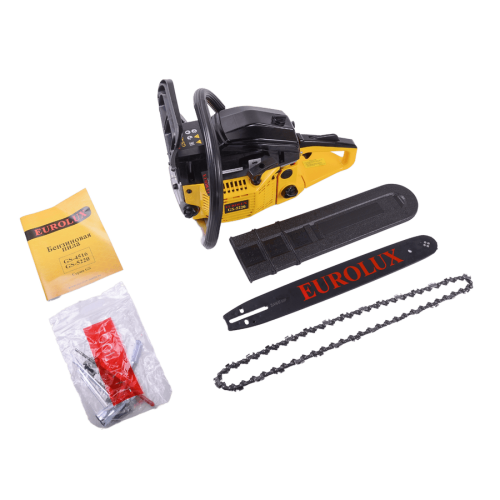 Модель цепной пилы Eurolux GS-5220 с бензиновым карбюраторным двигателем пользуется высокой популярностью благодаря универсальности, надёжности и удобству эксплуатации. Она оснащена мощным силовым агрегатом – 2.8 кВт и шиной длиной 505 мм, что позволяет справляться с широким кругом задач. С помощью этой бензопилы можно осуществлять продольную и поперечную распиловку древесины, валить деревья, спиливать ветки, пилить брёвна, заготавливать дрова и т.д.
