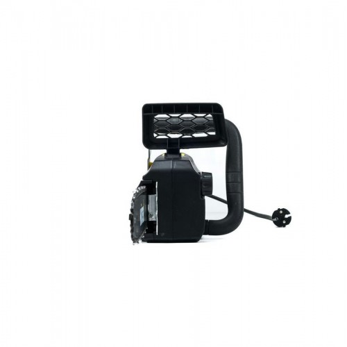 Электропила имеет эргономичную прорезиненную рукоятку. Фиксатор в ее основании предотвращает отсоединение штекера от розетки в процессе работы. Блокировка случайного включения и тормоз цепи обеспечивают безопасность эксплуатации.