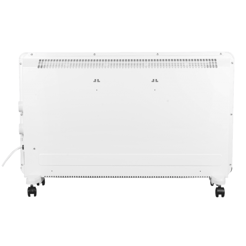 Электроконвектор работает бесшумно, перенос тепла с нагревательного элемента в помещение осуществляется за счет конвекции. Холодный воздух через нижние заборные решетки попадает на стич-элемент, под действием нагрева расширяется и поднимается вверх. Корпус обогревателя остается комфортной температуры и не обжигает при случайном касании.