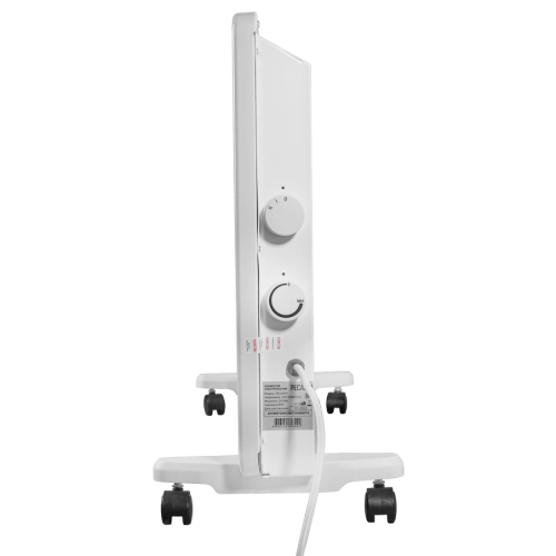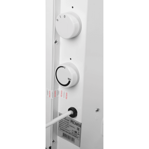 В конвекторе установлен стич-нагреватель мощностью 2 кВт. Ручка регулировки температуры включает обогреватель на половинную или полную мощность. Два режима работы позволяют настроить комфортную температуру воздуха. Термодатчик будет автоматически её поддерживать. Для безопасной эксплуатации в приборе предусмотрена защита от перегрева.