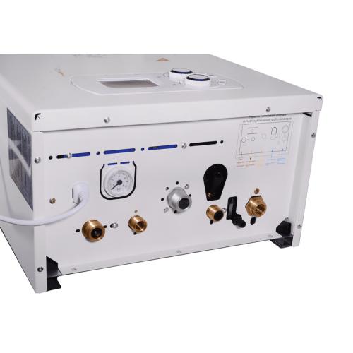 Преимуществом Ресанта ГК-20 является защита от замерзания. При снижении температуры теплоносителя доминимальных значений прибор самостоятельно включается и подогревает его до 30 градусов. Многофункциональный дисплей делает управление максимально простым. На нем отображаются и возможные сбои в работе, что позволяет сразу предпринять необходимые меры в случае неисправностей. Котел имеет два раздельных теплообменника: первичный из меди с защитным покрытием, вторичный из нержавеющей стали.