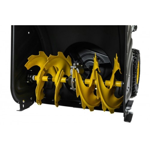 Металлический шнек быстро измельчает снег любой плотности. Увеличенная высота захвата позволит за один проход убирать высокие сугробы. Количество передних скоростей увеличено: 5 вперед и 2 назад. Колёса оснащены глубоким протектором, который не дает проскальзывать на гололеде.