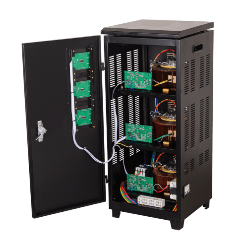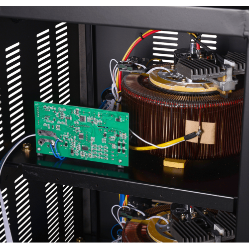 Преимущество электромеханического трансформатора заключается в постоянном контроле параметров сети, при котором напряжение измеряется на каждом витке рабочей обмотки. Это позволяет устройству быстро реагировать на любые изменения и стабилизировать параметры со скоростью 30 В/сек. Рабочий диапазон входного фазного напряжения составляет 140-260 В. При падении или превышении границ входного напряжения подача электроэнергии прекращается, пока стабилизатор напряжения не произведет корректировку. Для отслеживания текущих данных рекомендуется использовать цифровой дисплей. Установка заключена в прочный корпус, охлаждение осуществляется естественным путем через специально предусмотренные для этого решетки. В случае перегрузки трансформатор автоматически отключается.