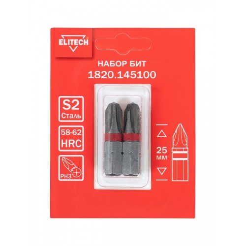 Elitech Биты PH3 25мм 2шт 1820.145100