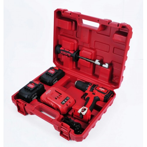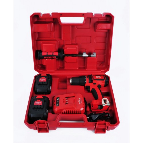 Бесщеточный двигатель шуруповерта ELITECH ДА 18УБЛ2 имеет высокий ресурс (минимум в 10 раз больше обычного коллекторного двигателя), электронную защиту от перегрузки, более высокий КПД и позволяет произвести больше работы на одном заряде аккумулятора. Двигатель имеет компактный размер, что позволяет уменьшить габариты инструмента и его массу. Функция сверления с ударом позволяет получать отверстия в кирпиче, камне, легком бетоне. Дрель имеет две скорости (0-500 и 0-2000 об/мин), реверс, муфту ограничения крутящего момента с 25-ю положениями и возможностью отключения (для режима сверления). Патрон бесключевой, одномуфтовый, с диапазоном зажима от 2 до 13 мм. Для управления патроном одной рукой дрель имеет автоматическую блокировку шпинделя. Эргономичная рукоятка имеет накладки для предотвращения проскальзывания в руке. Резиновые вставки на корпусе удерживают инструмент на наклонной плоскости и защищают поверхность, на которую кладут дрель, от возможного повреждения корпусом дрели. Имеется светодиодная подсветка, скоба подвеса на ремень и индикатор уровня заряда аккумулятора (на корпусе дрели). Шестерни в редукторе выполнены из стали. Выходной вал на двух разнесенных подшипниках. Для питания дрели используется Li-Ion аккумулятор, напряжением 18 вольт и емкостью 4 Ач (в комплекте 2 шт.). Время заряда аккумулятора штатным зарядным устройством составляет 60 минут.